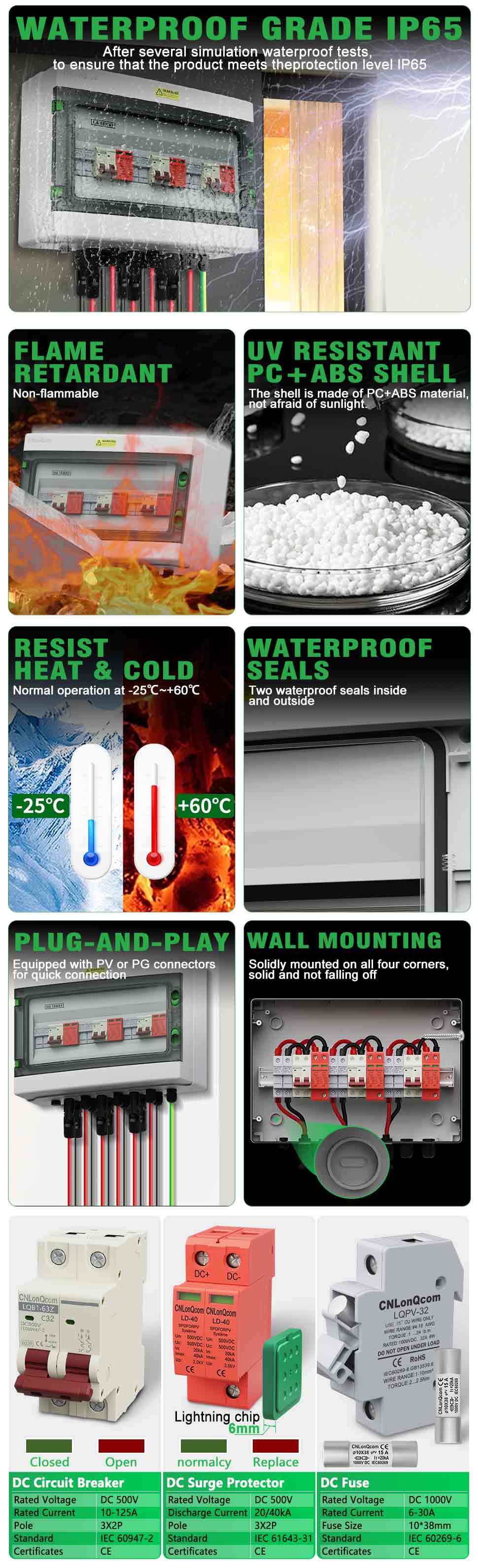 Cnllonqcom's HA Series Plastik Plastik Tipe 3 Ing 3 DC500V / 600V / 800V utamane digunakake kanggo nglindhungi sistem PV lan asring digunakake ing sistem sistem PV lan asring digunakake ing sistem sistem PV lan asring digunakake ing sistem sing disambungake utawa bisa digunakake ing kothak utawa sistem sinambung. Kayata panel PV, RV, prau, ruangan PV, kluwarga, lsp.