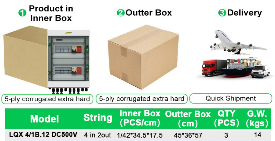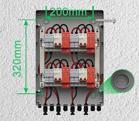 Kothak Combiner PV 4 ing 4 DC500V / 600V / 800VEFtiftively nglindhungi Inverters lan Panel solar saka karusakan lan dikirim saka geni.