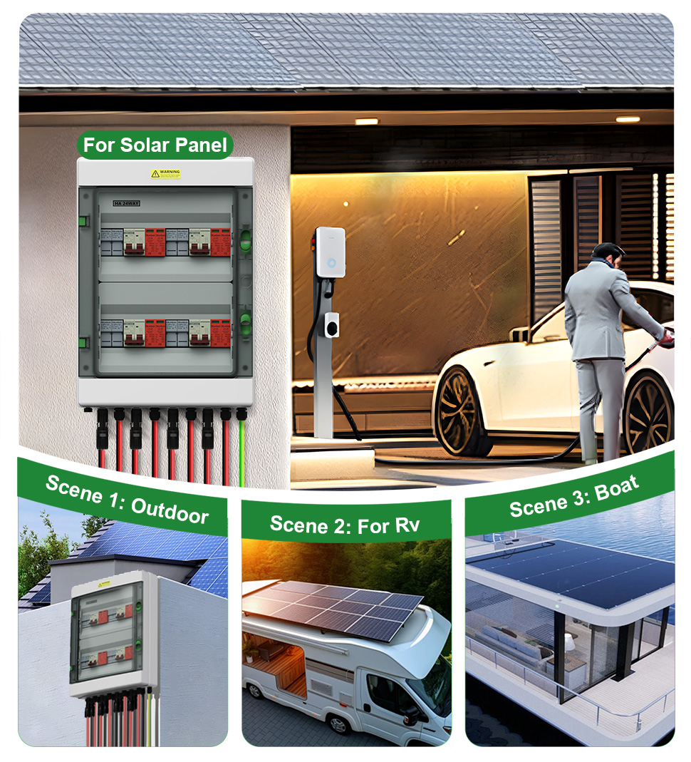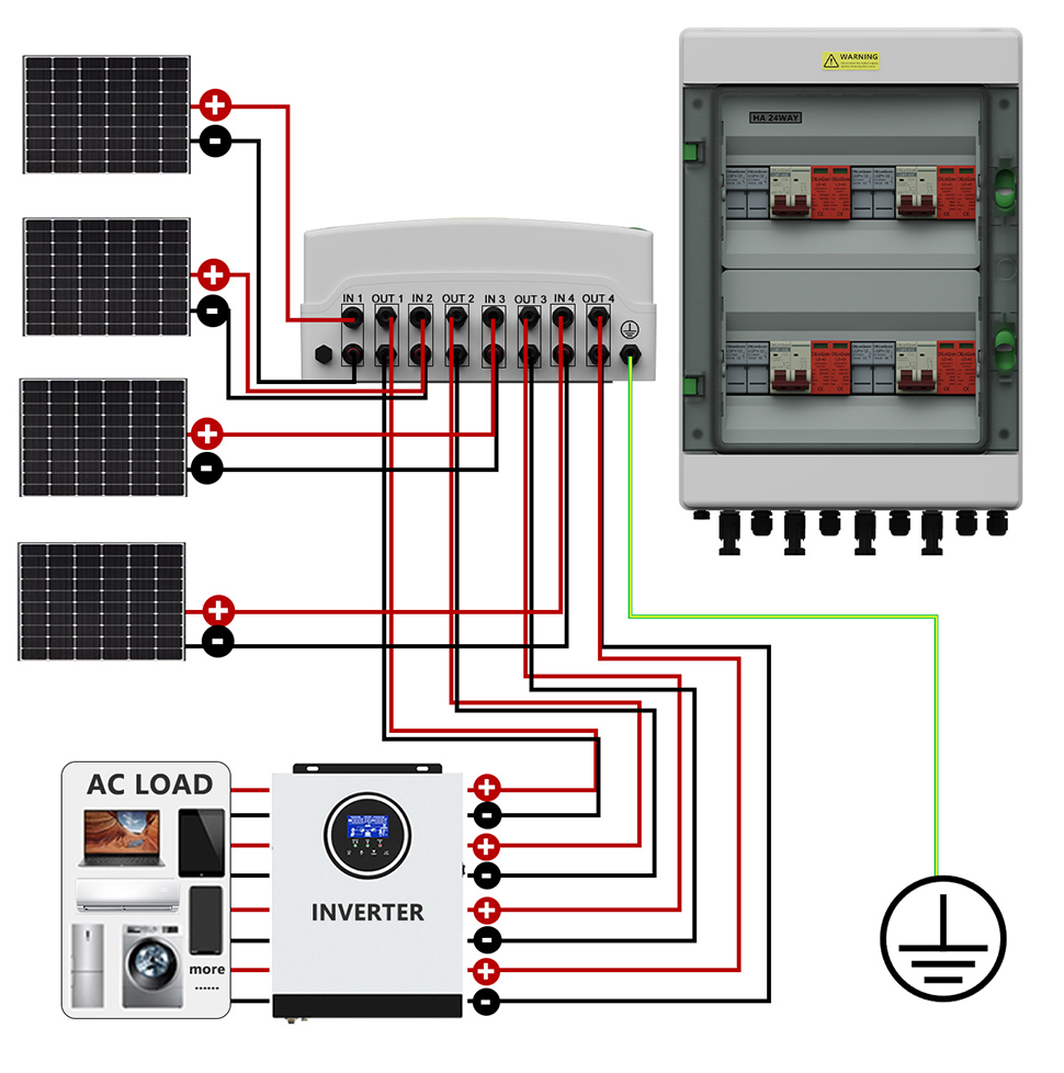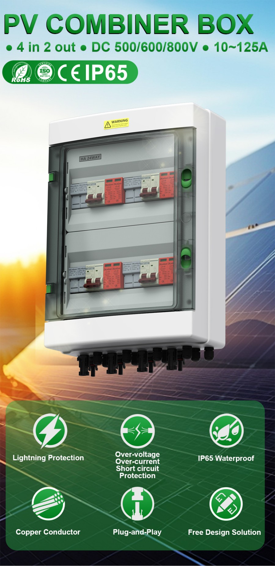 Cnllonqcom's HA Series Plaschiner Plasti Plastik 4 ing 4 Metu DC500V / 600V / 800V utamane digunakake kanggo nglindhungi sistem PV lan asring digunakake ing sistem sistem pv lan asring digunakake ing sistem sistem sing disambungake. Kayata panel PV, RV, prau, ruangan PV, kluwarga, lsp.